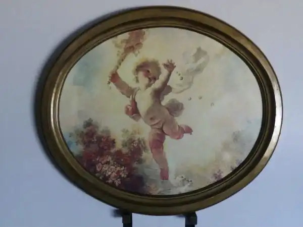 Cuadro Oval de Dos Ángeles en Jardín Barroco
