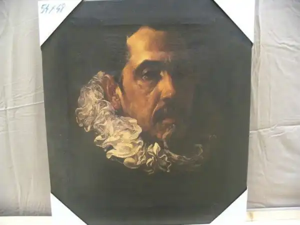 Retrato dramático de hombre con gorguera blanca y fondo oscuro; estilo manierista, ideal para galería noble o estudio